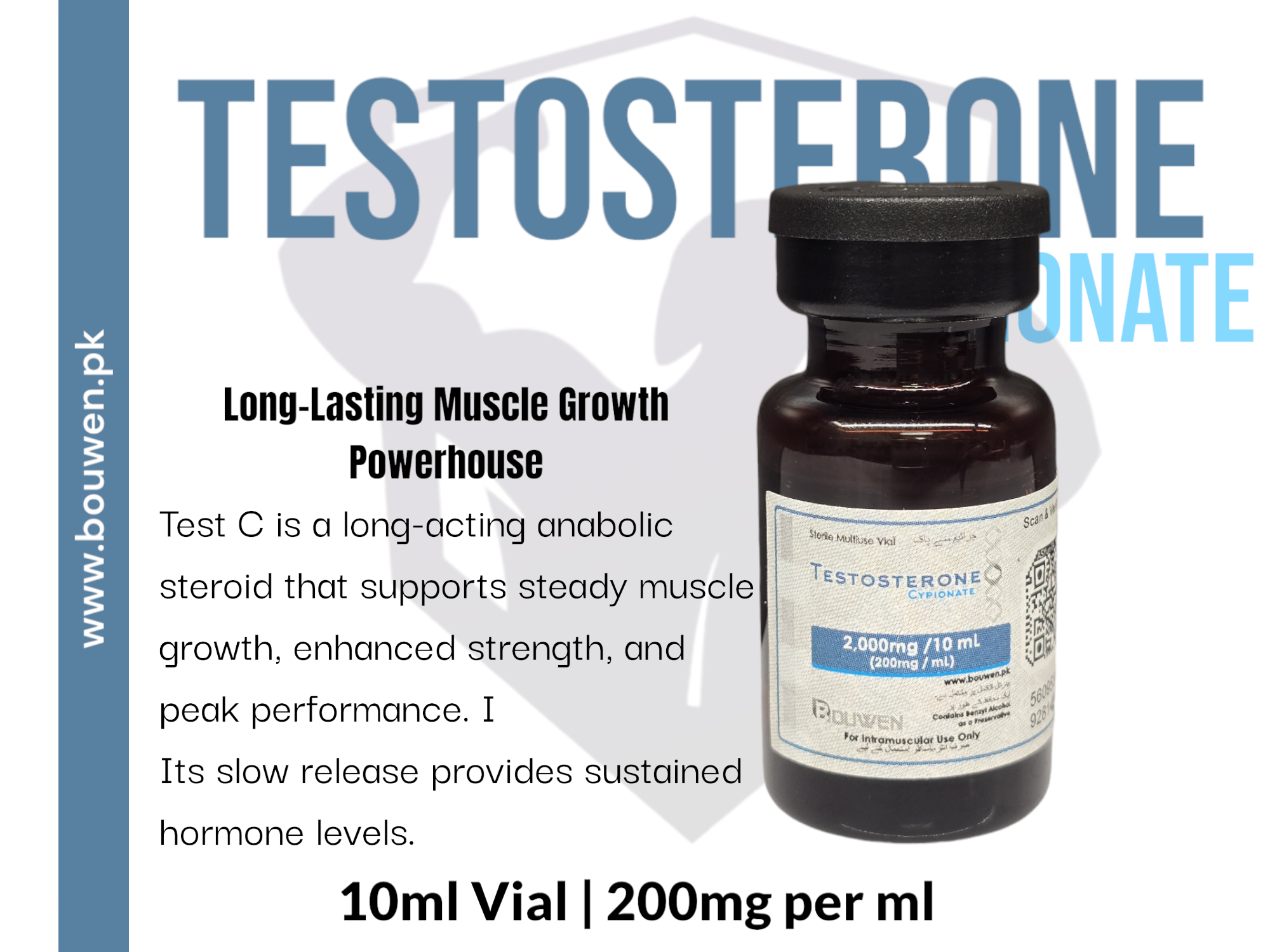 Testosterone Cypionate by Bouwen is an injectable anabolic steroid that mimics the naturally occurring testosterone hormone, which is crucial for the development and maintenance of male sexual characteristics and muscle growth. With its advanced formulation, Bouwen’s Testosterone Cypionate provides a slow-release of testosterone, making it an ideal choice for athletes and bodybuilders looking for sustained performance enhancement without frequent dosing. Each vial is crafted to ensure that you receive a potent dose to support your training and bodybuilding goals.